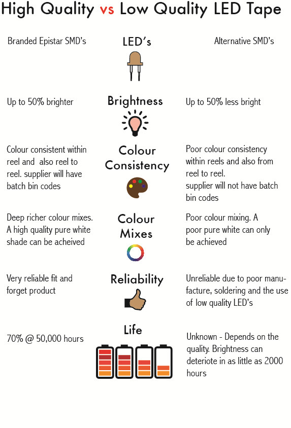 Thetalight LED have been supplying LED strip lights for over 6 years. Our products use only premium components, and are all built to last with a 3 year warranty. Unfortunately our competitors don’t always adhere to the same high standards.