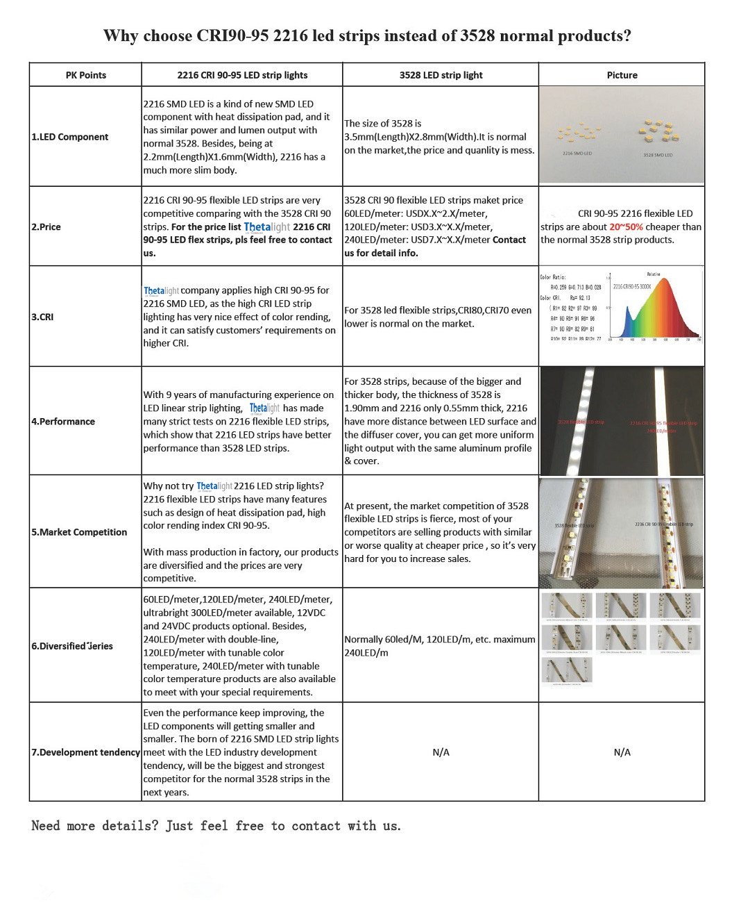 Why choose CRI90-95 2216 LED strips instead of 3528 strips?